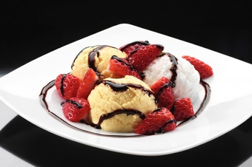 Servire il gelato (Fior di Latte o crema) in coppette versando 1-2 cucchiaini di Aceto su ogni porzione.